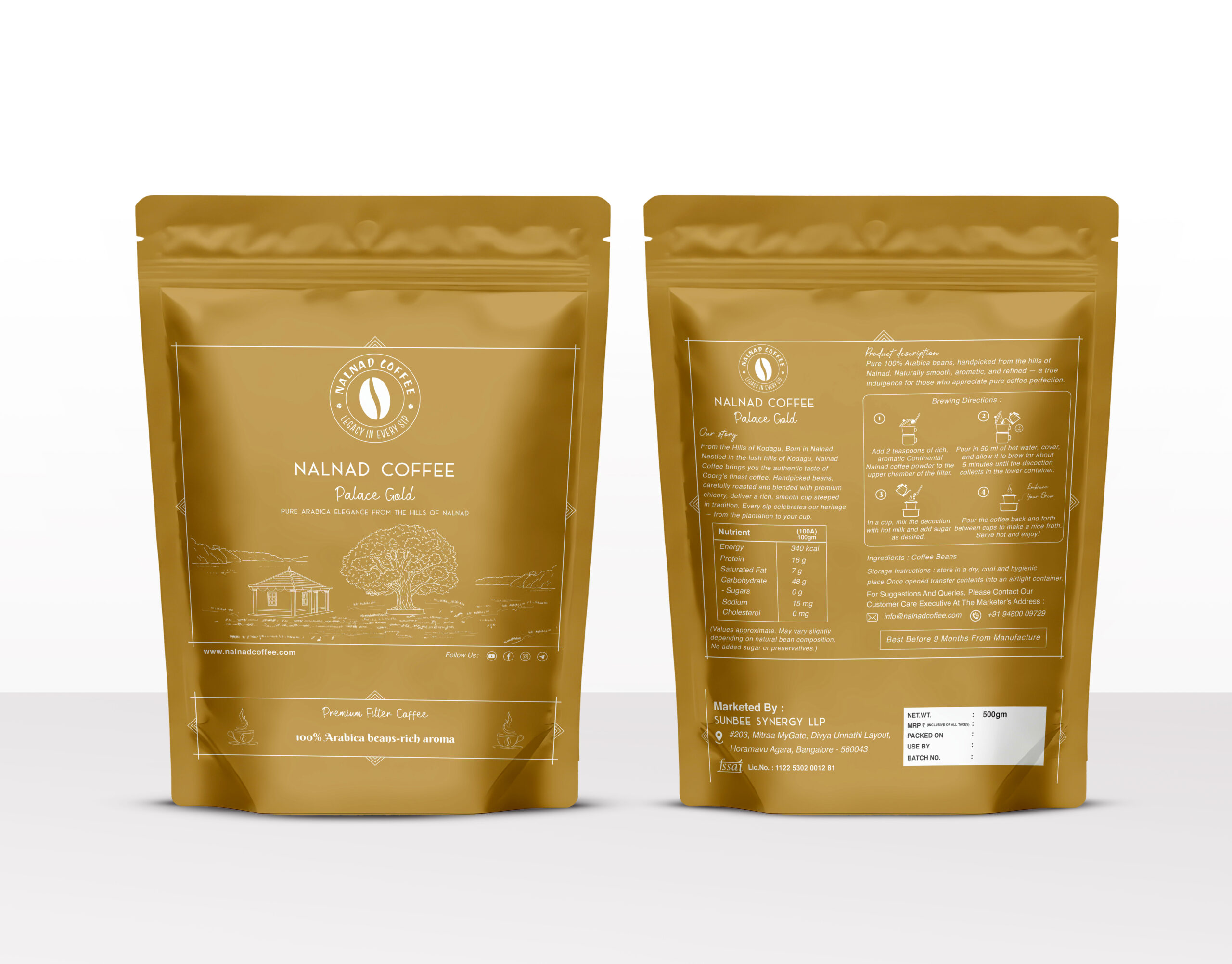 Nalnad Palace Gold is our purest expression of Kodagu’s Arabica heritage — a 100% single-estate Arabica filter coffee with no chicory and no compromise. Light, complex, and refined, Palace Gold is for those who appreciate coffee at its most sovereign.